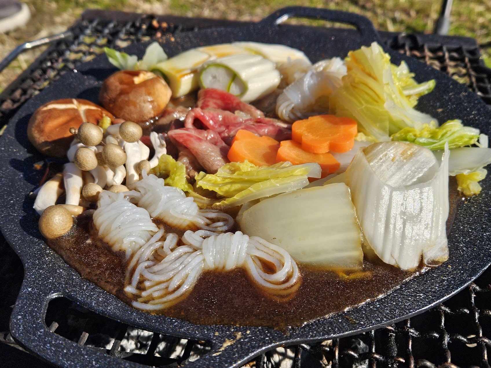 強風が吹きつける海辺で、松坂牛と下仁田ネギを使った、豪華すぎる外すき焼きをしたのだ。