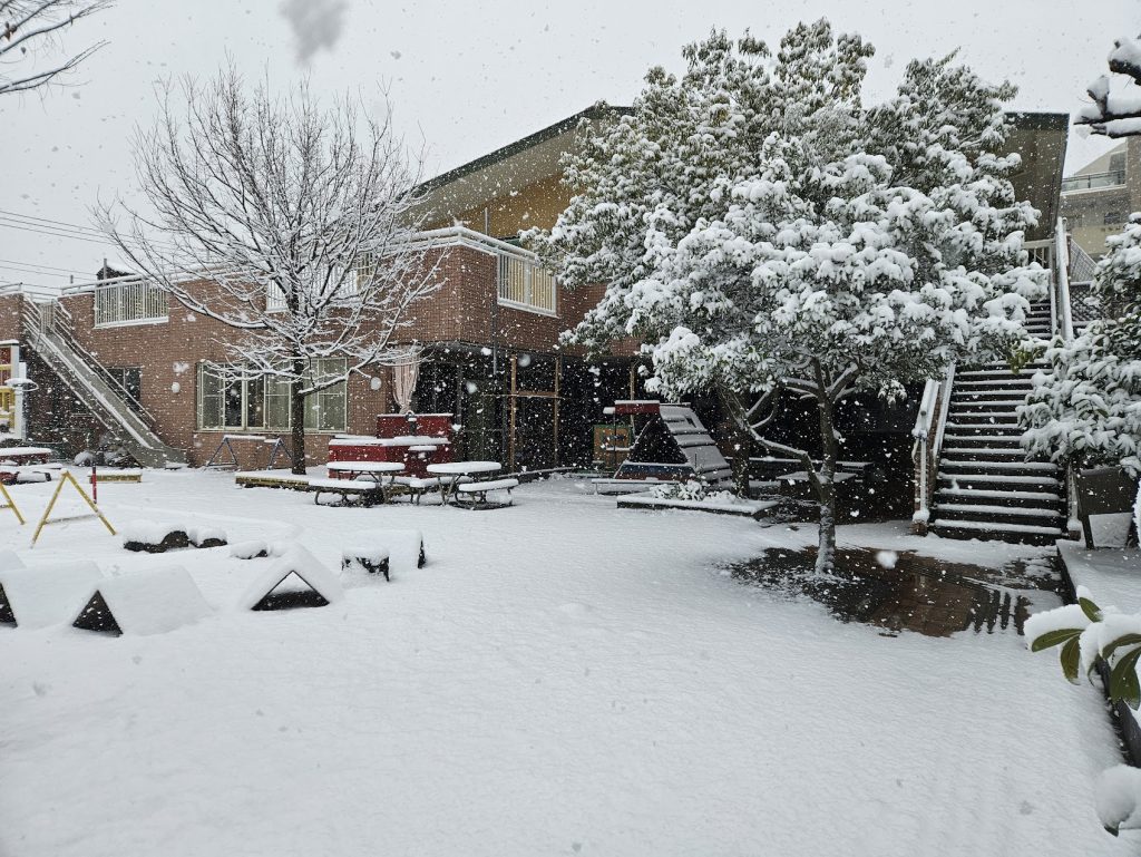 そしてもう一つは、保育者としての頭です。——もし、この雪が明日も残っていたら・・・。